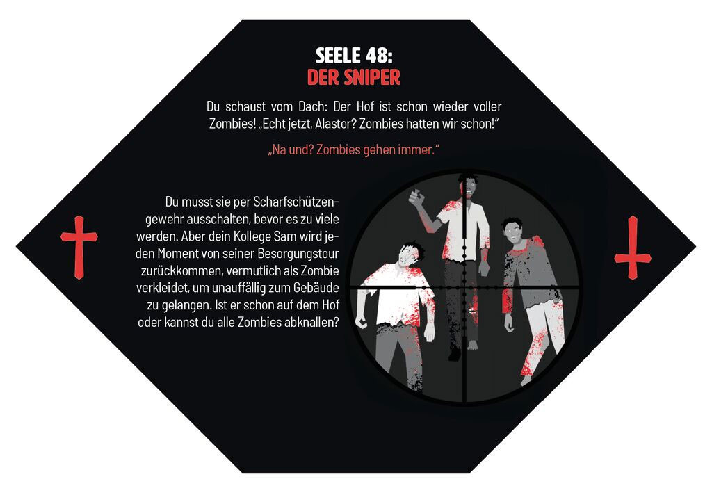 Willkommen in der Hölle! Diese extragefährlichen Rätsel sind nichts für schwache Nerven. Stellen Sie sich vor, Sie landen nach Ihrem Ableben in der Hölle, wo unsägliche Schmerzen und ewige Folter auf Sie warten. Klingt nicht verlockend? Dann haben Sie die Chance, durch ein Rehabilitationsprogramm der Hölle zu entfliehen. Dazu müssen Sie nur 55 tödliche Denksportaufgaben lösen, die das Hirn kochen und die Zähne klappern lassen. Wer sich Zombies, Psychopathen und Horrorclowns stellt, darf sich keinen Fehler erlauben sonst wird es der letzte sein. Klingt wie ein Escape-Game? Ist es auch! Die Rätsel sind mindestens so aufregend, aber nicht ganz so zeitintensiv wie ein ganzes Escape-Room-Spiel. Der perfekte Zeitvertreib also für alle, die gerade keine Zeit für ein ganzes Escape-Game haben.
