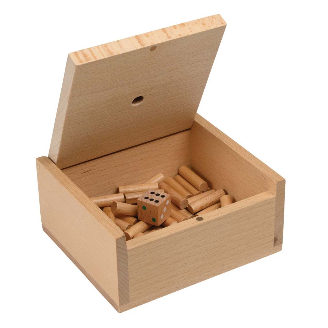 | Inhalt: | 1 Würfel, Holzbox, ca. 50 Stäbchen |