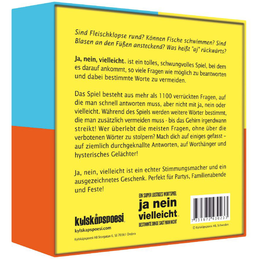 Ja, nein, vielleicht ist ein tolles, schwungvolles Spiel, bei dem es darauf ankommt, so viele Fragen wie möglich zu beantworten und dabei bestimmte Worte zu vermeiden.