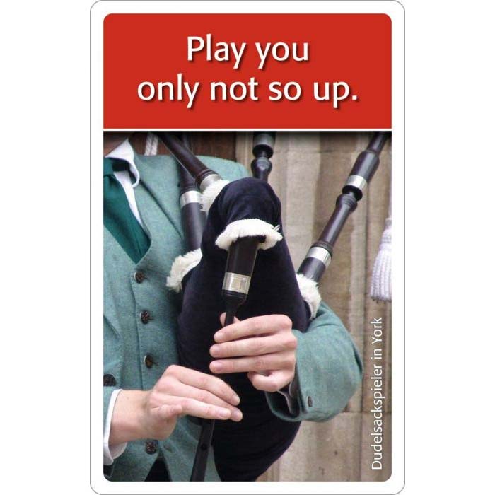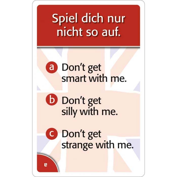 Endlich gibt es einen weiteren Nachfolgetitel zu unseren beliebten Spielen um englische Redewendungen Now goes me a light up und My English is under all pig. Auf Sie warten 75 unterhaltsame denglische Sprüche und Begriffe. Wer schafft es, die denglischen Sprüche und Wörter in korrektes Englisch zu übersetzen? Und erkennen die Spieler die vermeintlich englischen Begriffe, die es im Englischen gar nicht gibt? Ob allein oder im Team dieses Quiz bietet Ratespaß für die ganze Familie.