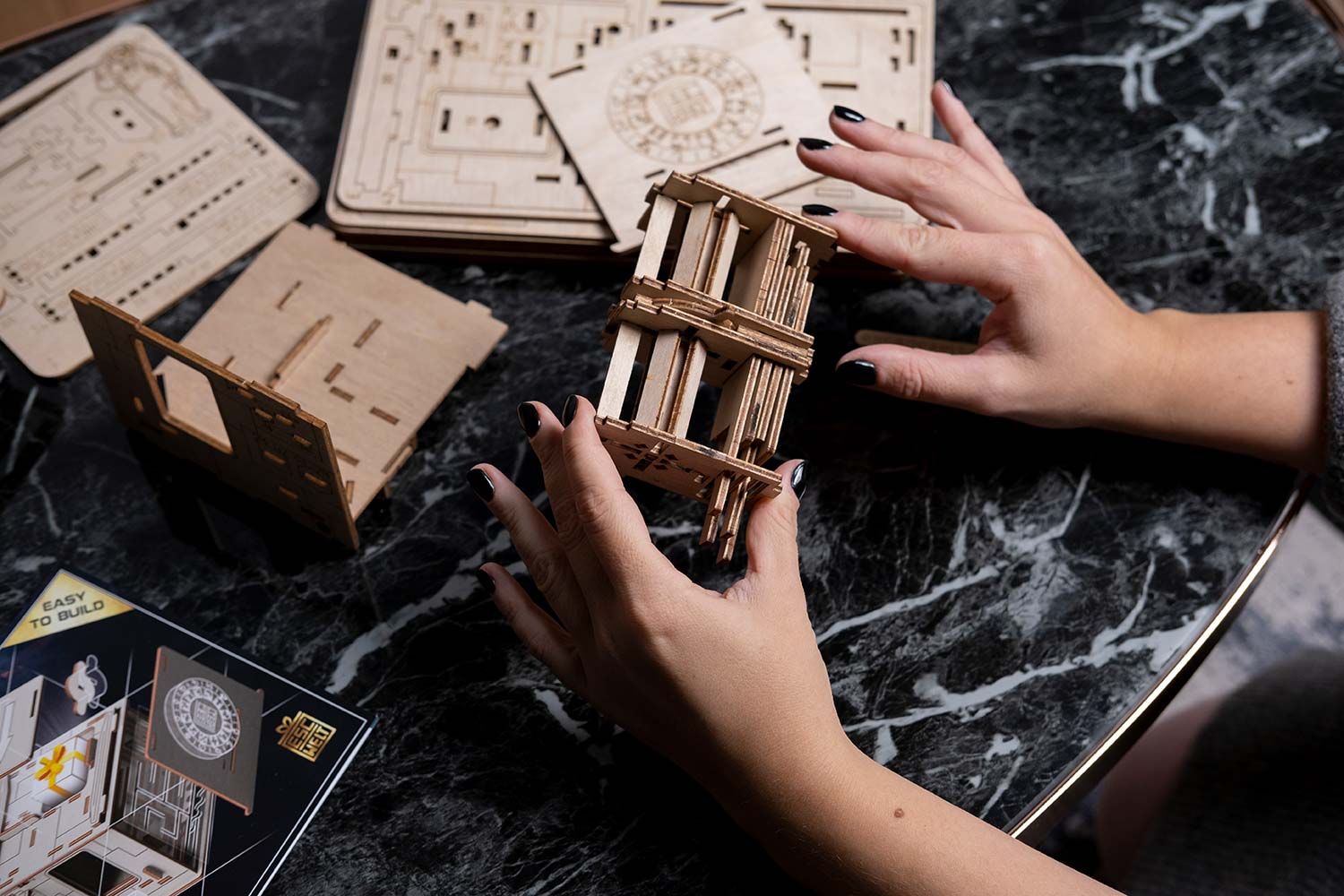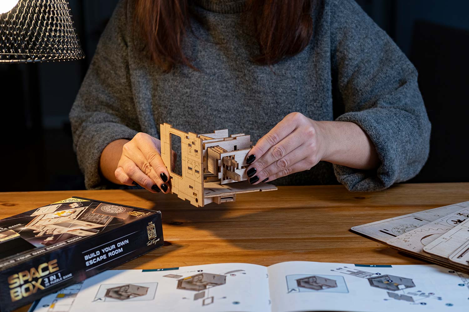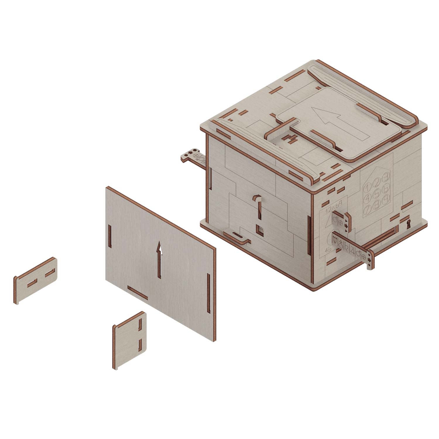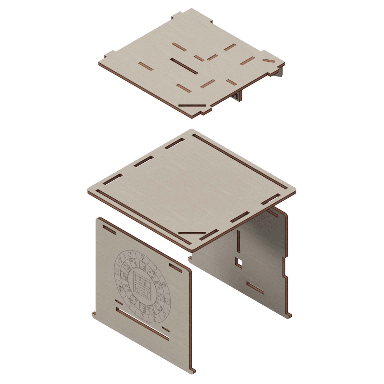 Die Space Box als Bausatz! Haben Sie doppelt Spaß, indem Sie zuerst die Box zusammenbauen und anschließend die Rätsel zum Öffnen der Box lösen! Der Bausatz besteht aus 98 Holzteilen, die in mehreren Holzplatten vorgelasert wurden.