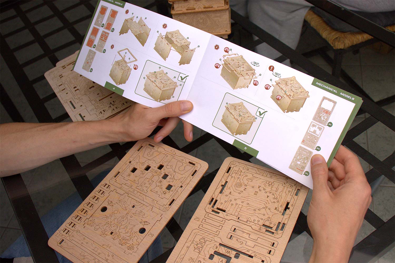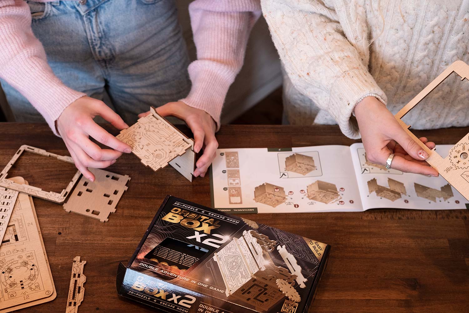 Orbital Box ist ein absolut umweltfreundliches Produkt, denn für alle EscapeWelt Spiele wird das beste natürliche Material Birke ausgewählt. Wir suchen das Holz sorgfältig aus, sortieren es und bereiten es für die Produktion vor. In unseren Fabriken in der EU bauen wir die Orbital Box sorgfältig von Hand zusammen, verpacken sie und schicken sie zu dir, und all das mit Liebe.