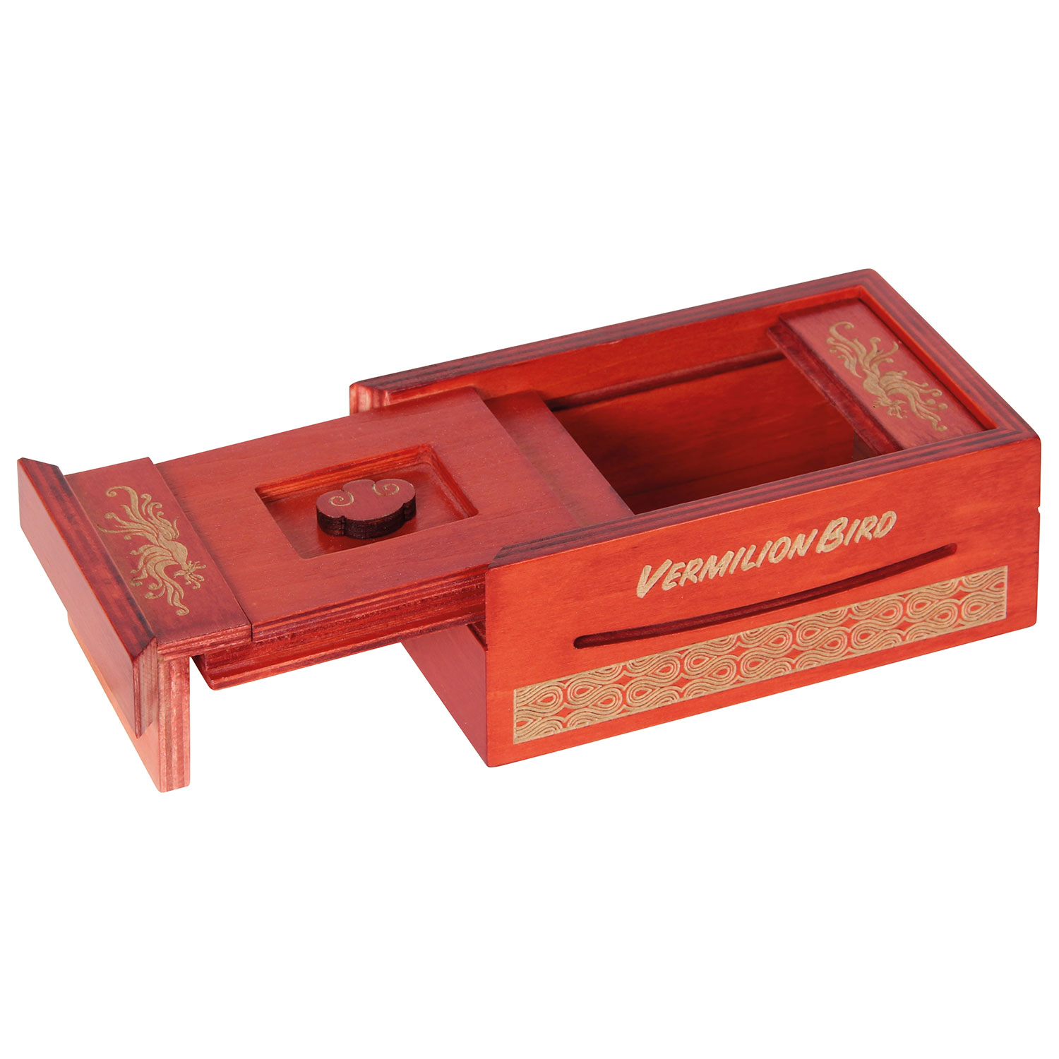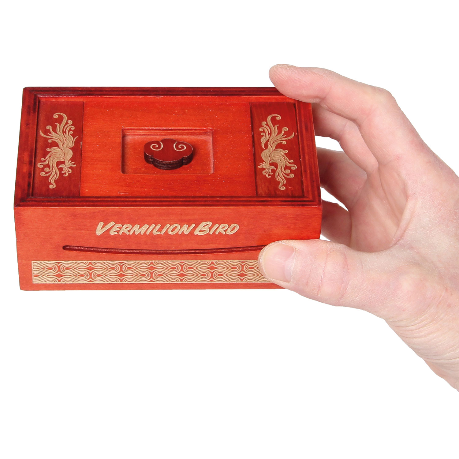 Die rote Trickkiste "Vermilion Bird" eignet sich hervorragend als Verpackung für ein kleines Geschenk oder Geld. Nur, wenn Sie das Rätsel lösen, können Sie die Box öffnen.
