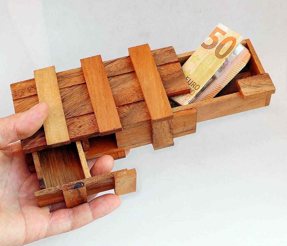 Die Pandora Trickbox Doppel ist eine klassische Trickbox, die toll zum Verschenken von Geld oder anderen Kleinigkeiten geeignet ist. Diese Box ist eine verlängerte Version des klassischen Pandora Trickbox, es gibt zwei Fächer, das erste sperrt das zweite.