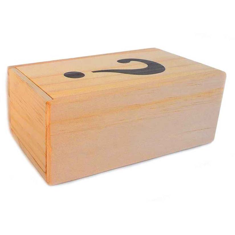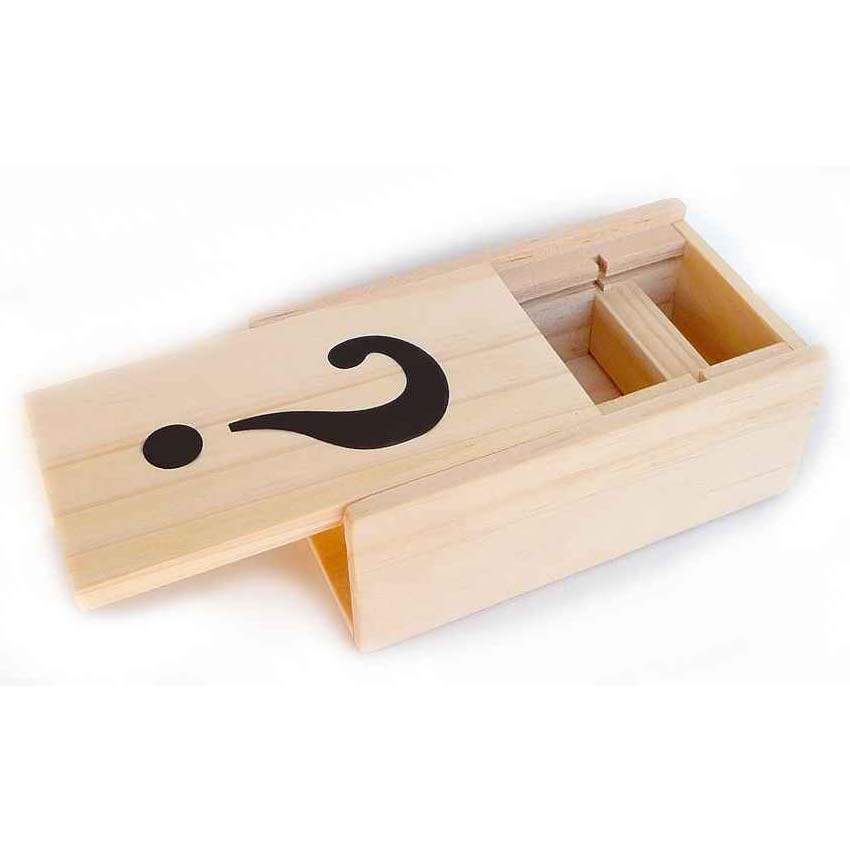 Die Fragezeichen-Box ist eine relativ schwierige Trickbox, die sich hervorragend für Geldgeschenke oder andere kleine Präsente eignet. Maße des Innenraums: 6 x 4,3 x 2,5 cm