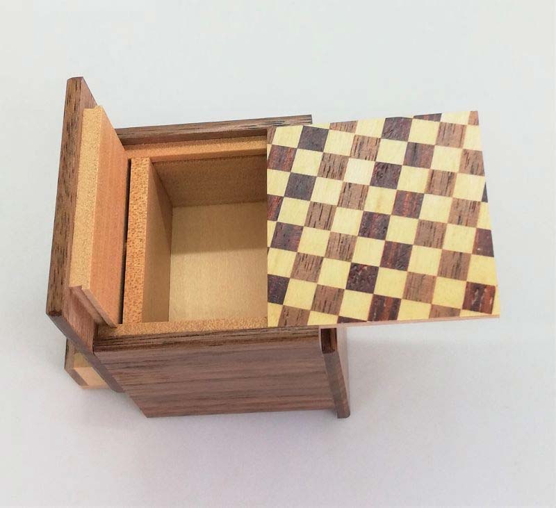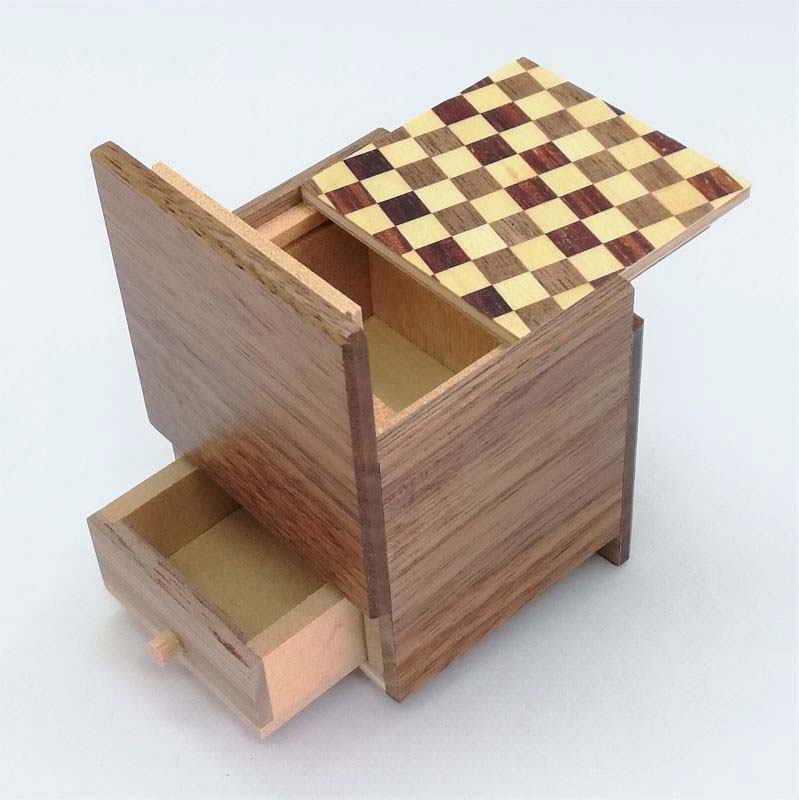 Himitsu Bako 2 Sun Cube 4 Steps Drawer Ichimatsu / Walnut Wood mit Schublade