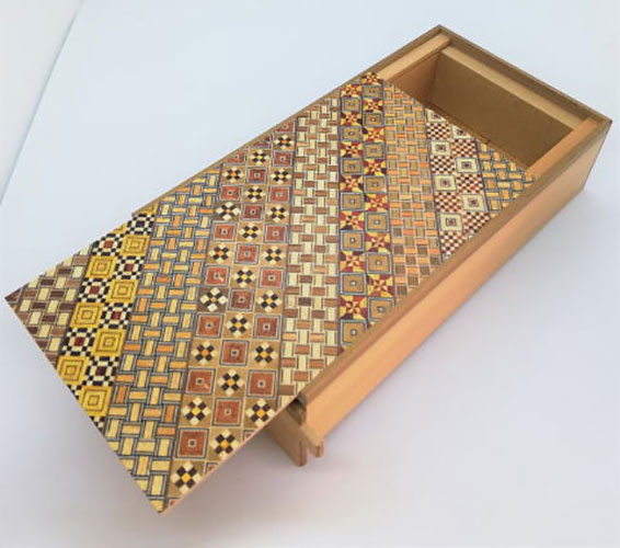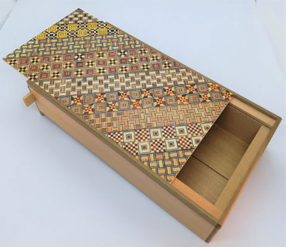 Die Verzierungskunst Yosegi ist eine über 200 Jahre alte Handwerkskunst. Verschiedenfarbige Hölzer kommen zum Einsatz, um die Formen und Muster abzubilden. Es gibt nur sehr wenige Meister, die in der Lage sind, Yosegi herzustellen. Diese Verzierungen werden in der Regel nicht von den Himitsu Bako Meistern hergestellt, sondern eingekauft und auf den Boxen aufgebracht.