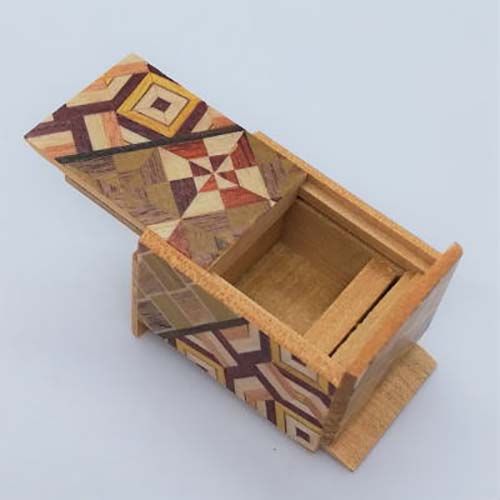 Die japanische Trickbox Himitsu Bako Mame 14 Steps: Himitsu Bako ist Japanisch und steht für "Geheimkasten". Die Box wird aus Holz in Handarbeit hergestellt und kann nur geöffnet werden, indem einzelne Elemente der Box in einer bestimmten Reihenfolge verschoben werden.
