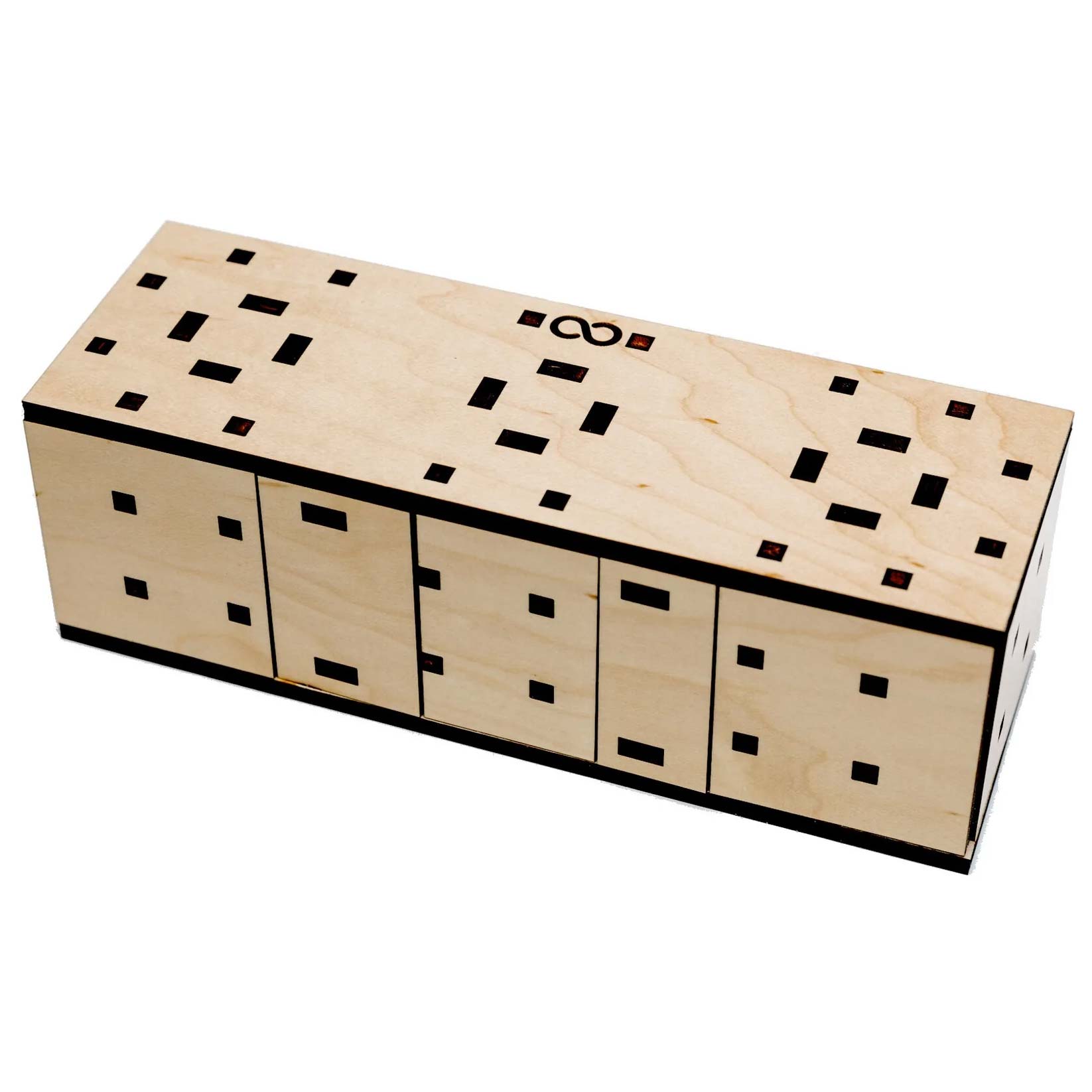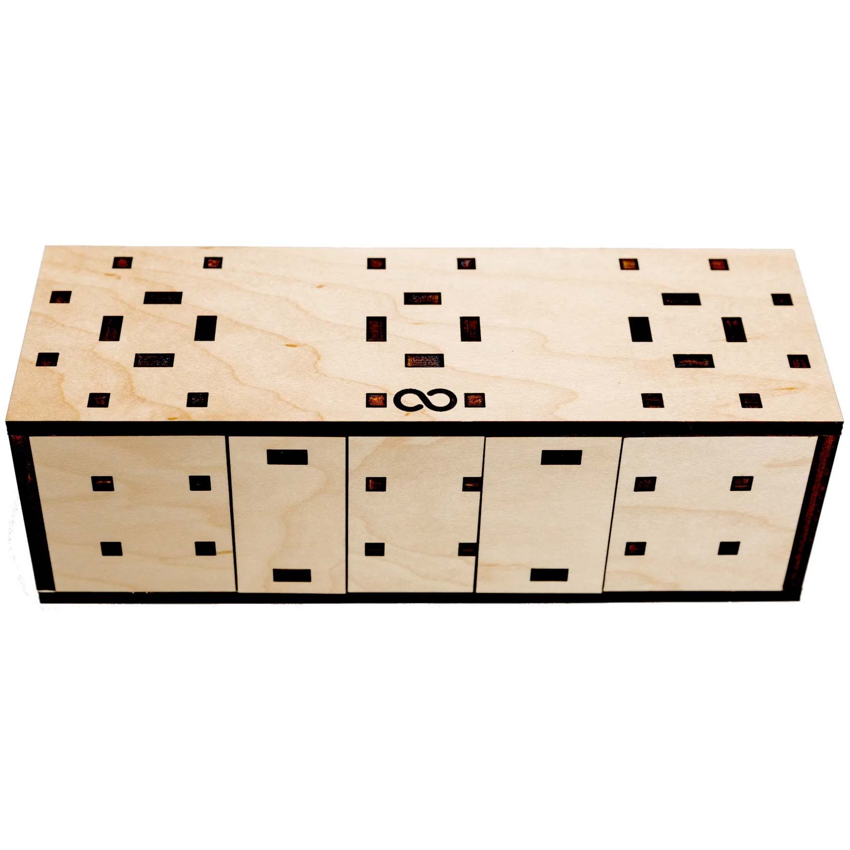 Altair ist eine originelle Puzzlebox aus Holz, die gelöst wird, indem verschiedene Schiebeteile bewegt werden, um das Puzzle zu zerlegen und das versteckte Fach freizulegen. Dieses wunderschön gearbeitete Puzzle besteht aus hochwertigem Ahornholz mit einem wunderschönen Finish.