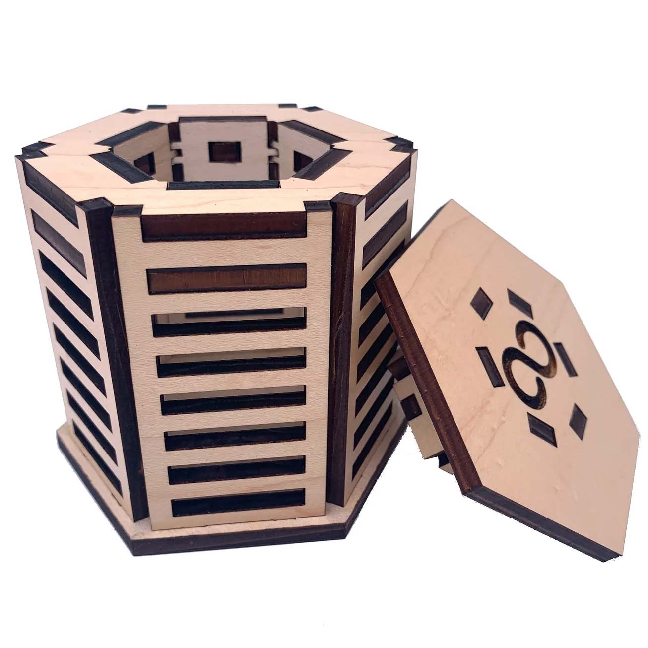 Silvaneo ist eine originelle Puzzlebox aus Holz, die gelöst wird, indem Teile verschoben werden, um das Puzzle zu öffnen und das versteckte Fach freizulegen. Dieses wunderschön gearbeitete Puzzle besteht aus hochwertigem Ahornholz mit einem wunderschönen Finish.
