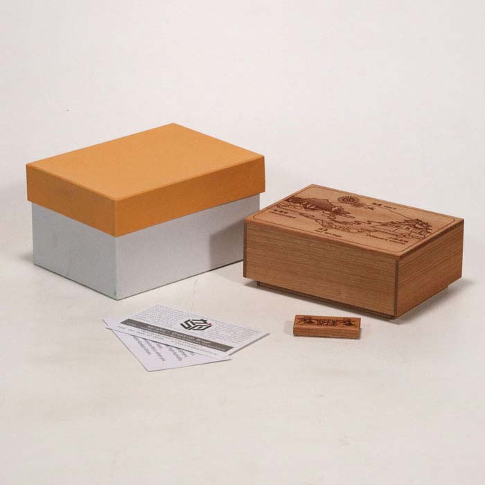 Die Box Osaru no Kagoya (Gora) aus der Chotto Karakuri Serie ist eine Trickkiste eher für Beginner. Sie können die Box öffnen, wenn die Osaru (Affen) die Kago (Sänfte) vom Odawara Castle nach Gora gebracht haben. Die Box wurde von Japanischen Puzzlemeistern hergestellt und wird mit Lösung geliefert.