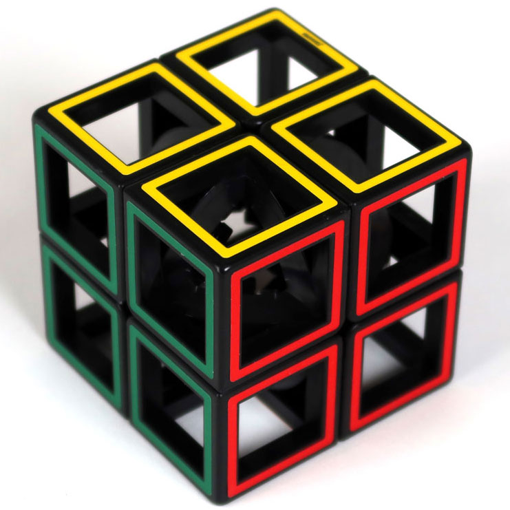 Das etwas andere 3D-Puzzle - Hollow Two by Two Cube mit offenen Flächen und interessanter Perspektive in das Innere des 2 x 2-Würfels. Das Ziel besteht in der Gleichfarbigkeit einer jeden Seite.