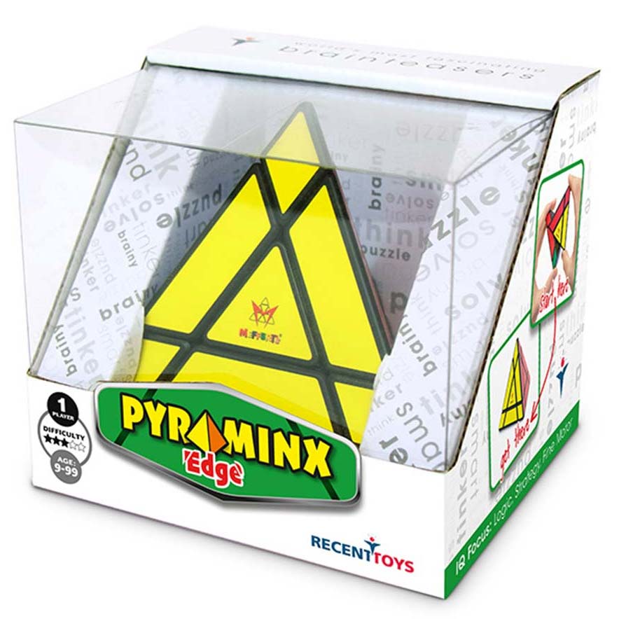 Mit seinem hochmodernen Design gehört Pyraminx Edge zu den kniffligsten Zauberwürfeln. Mit dieser neuen Ausgabe wird deine Geduld auf dem Weg zur Lösung bis fast auf das Äußerste auf die Probe gestellt. Bei diesem raffinierten Spiel geht es um die Randsegmente, denn nur diese können bewegt werden! Verdrehe die bunten Segmente zunächst, bis sie vollkommen vermischt sind. Danach sind die Segmente auf allen Seiten jeweils wieder in einer Farbe anzuordnen.