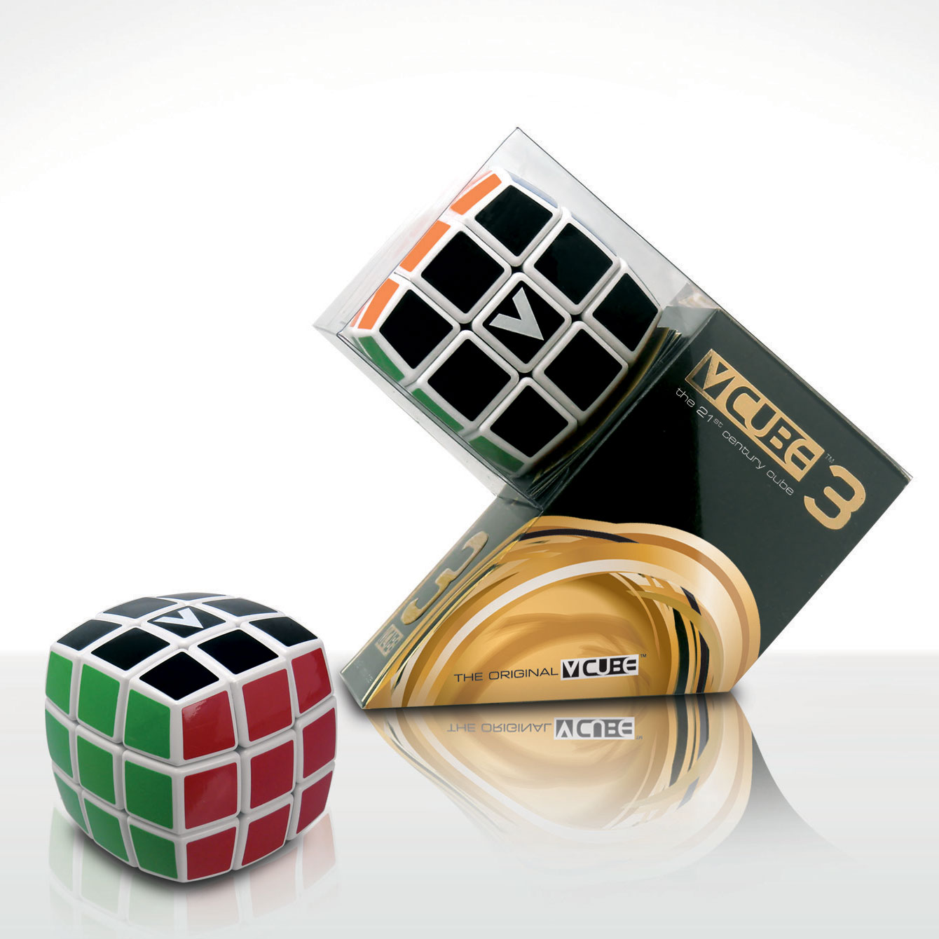 The original V-CUBE! The 21 st Century Cube! Der exklusive Würfel ist jeweils in Höhe, Breite und Tiefe in drei Ebenen unterteilt. Diese lassen sich superleicht drehen. In der Grundstellung hat jede Seite des Würfels eine einheitliche, aber von Seite zu Seite unterschiedliche Farbe. Ziel ist es, den Würfel wieder in seine Grundstellung zu bringen, nachdem die Seiten in eine zufällige Stellung gedreht wurden.