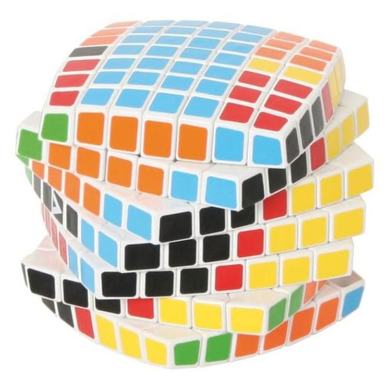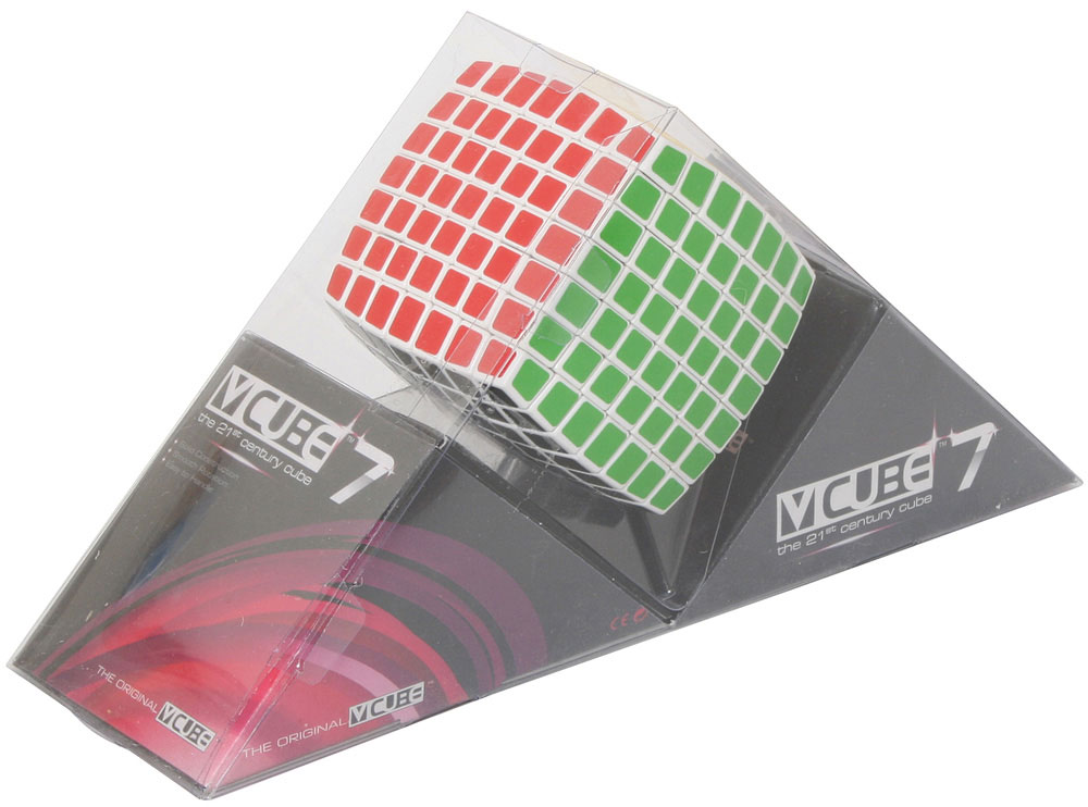 Der exklusive Würfel V-Cube 7 ist jeweils in Höhe, Breite und Tiefe in sieben Ebenen unterteilt. Diese lassen sich superleicht drehen. In der Grundstellung hat jede Seite des Würfels eine einheitliche, aber von Seite zu Seite unterschiedliche Farbe. Ziel ist es, den Würfel wieder in seine Grundstellung zu bringen, nachdem die Seiten in eine zufällige Stellung gedreht wurden.
