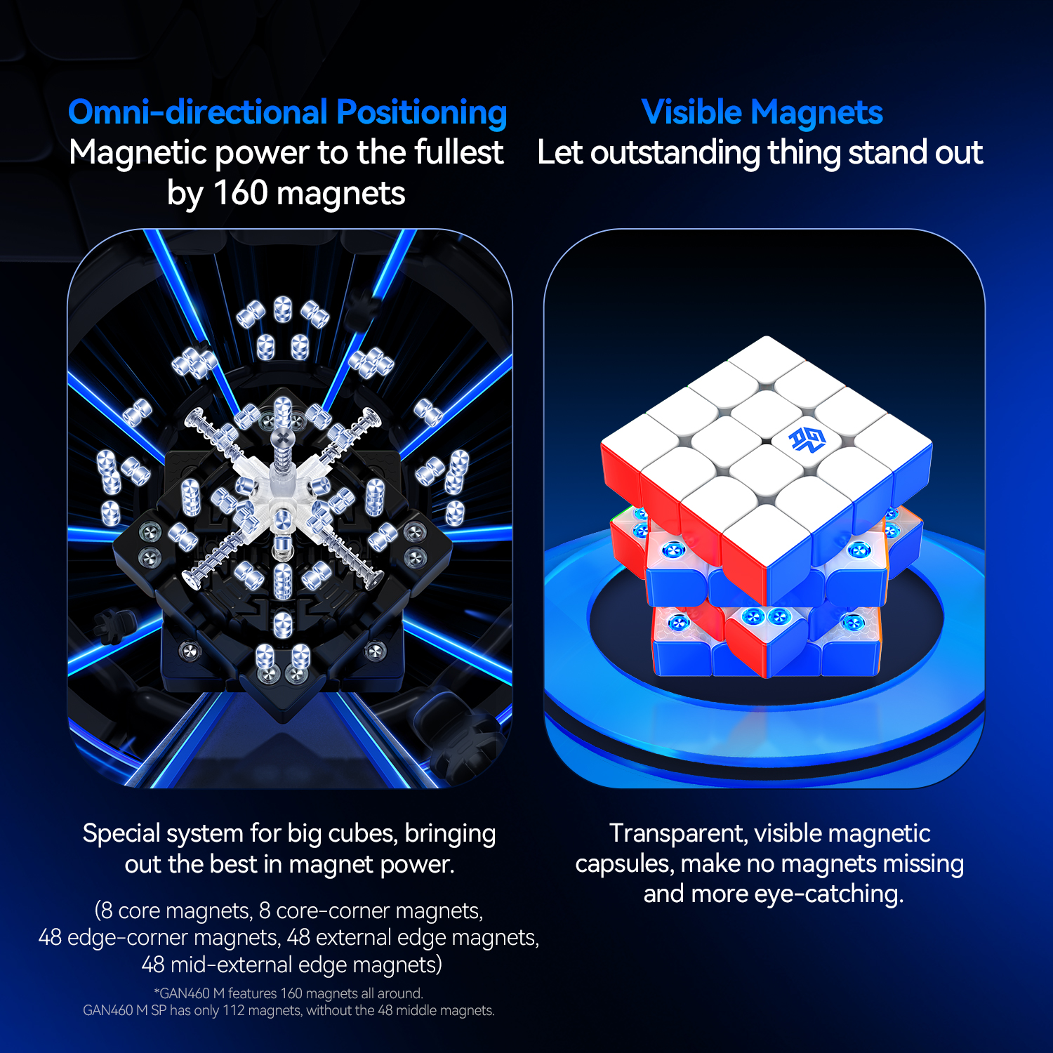 Der GAN460 M 4x4 (V2) SP Frosted Magic Cube kombiniert modernste Technik mit der bewährten GAN-Qualität. Ein leistungsstarker 4x4-Speedcube, der sowohl im Wettkampf als auch im täglichen Training durch Präzision, Stabilität und Komfort überzeugt.