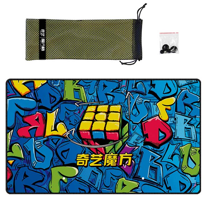Eine Matte zum Trainieren und Schonen der Cubes. Die Matte von QiYi ist mit dem Design "Hand Graffiti" verziert.